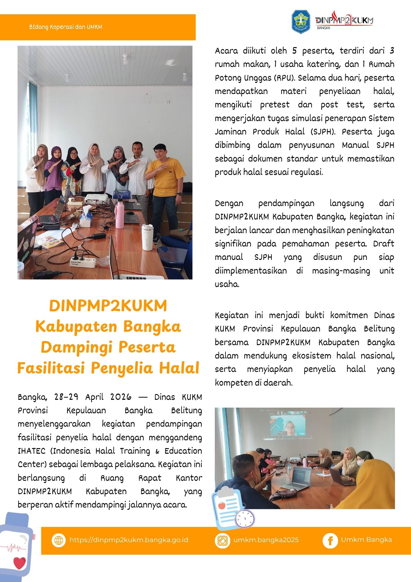 DINPMP2KUKM Kabupaten Bangka Dampingi Peserta Fasilitasi Penyelia Halal